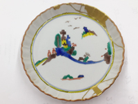 「金繕い」や「金直し」ともいい、割れた部分を継ぎ、欠けた部分を成形し、その部分に金銀の化粧を施し器を修繕する技法です。